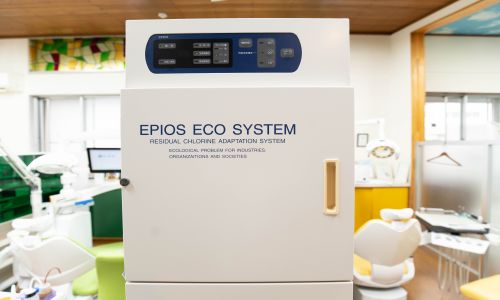 エピオス(電解中性殺菌水) エピオスは様々な装置により水質改善した水をさらに電気分解し、電解中性殺菌水を生成しています。うがい・手洗いのみならず、歯を削るタービンから出る水などの治療水として、診療全体に殺菌水を使用し、万全な院内感染対策を行っています。