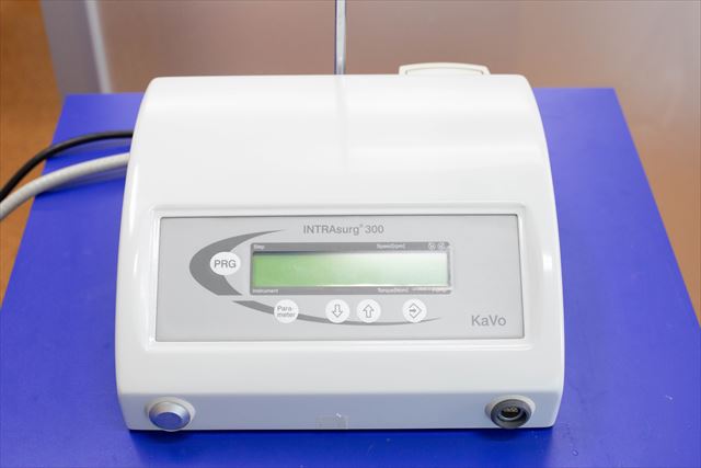 インプランター インプラントの手術時に使用する専用の機器です。人工歯根を埋入するために、一定の速度で顎の骨を削ります。